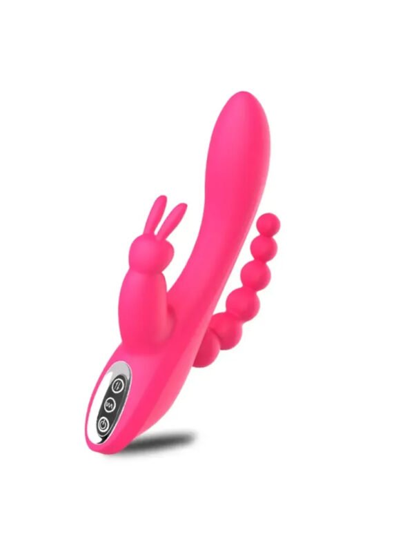 Vibrador de triple estimulación para el Punto G, clítoris y ano. no sentirás ningún tipo de incomodidad su material es super suave y úsalo donde mas cómoda te sientas .
